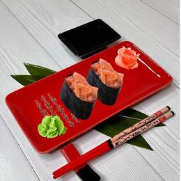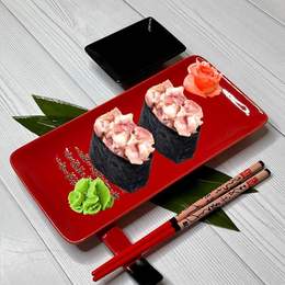 Рис, нори, сыр, огурец, лосось, стружка тунца