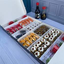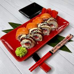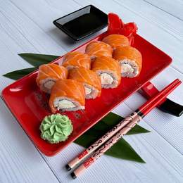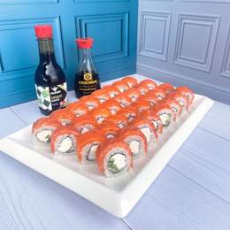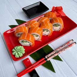 Роллы "Филадельфия", "Калифорния", "Цезарь темпура", "Американский", "Сяке темпура", "Сяке темпура", "Фила белый" + морс в подарок