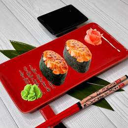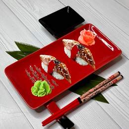 Рис, нори, сыр, огурец, икра тобико, лосось, угорь, унаги соус, кунжут