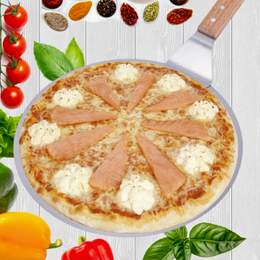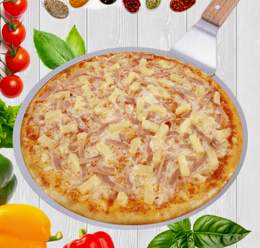 Фирменный "Пицца соус", сыр Моцарелла, ветчина говяжья, ананас
