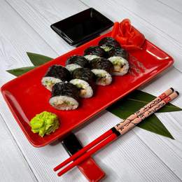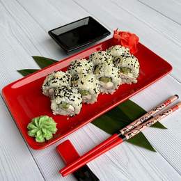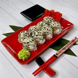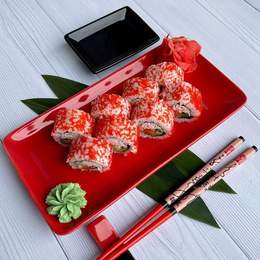 Рис, нори, огурец, снежний краб, икра тобико, соус