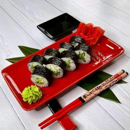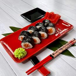 Рис, нори, сыр, лосось, унаги соус, томаго, лук зеленный