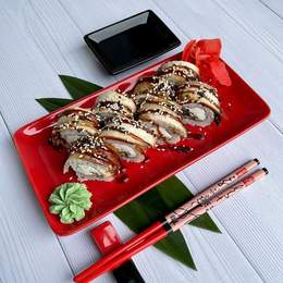 Рис, нори, сыр, угорь, огурец, кляр, панко, унаги соус