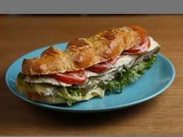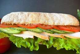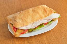 Цельнозерновой хлеб, куриное филе запеченное, соленые огурцы, помидоры, айсберг, сыр Моцарелла