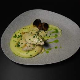 Запечённая куриная грудка под устричным соусом с картофельным пюре(350г)