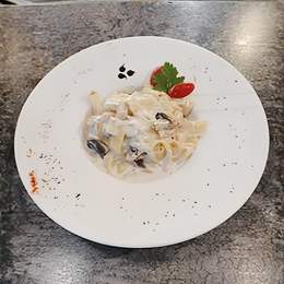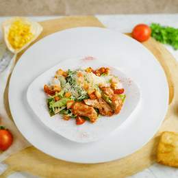 Домашняя паста в соусе "Альфредо" с курицей - это изысканное блюдо, приготовленное с любовью, которое сочетает в себе нежную и ароматную пасту, соус "Альфредо" и сочное кусочки курицы.