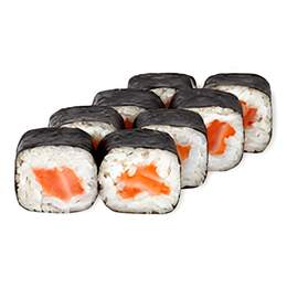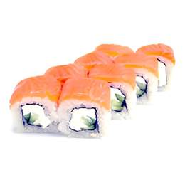 Этот ролл имеет классическую формуцию и состоит из нежного ломтика лосося, авокадо и нежной кремовой начинки внутри, обернутых в сеяный рис и лист нори. Внешняя часть ролла покрыта тонкими кусочками лосося.