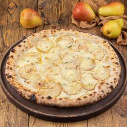 Пицца из печи с грушей, домашней Моцареллой, Горгонзолой и кедровыми орехами