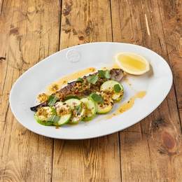 Форель мариновання в соевом соусе,обжаренная на гриле с кабачками.