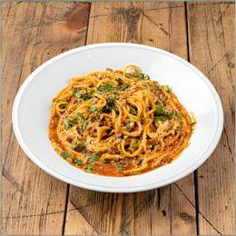 Домашняя паста с соусом из рубленой говядины, специй и сыра Пармезан