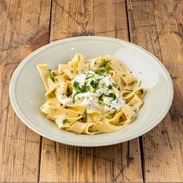 Домашняя паста с легким соусом и сливочной Страчателлой