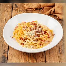 Домашняя паста с беконом, яйцом и сыром Пармезан