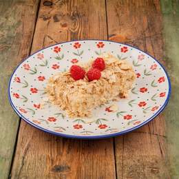 Легкий песочный корж из миндальной муки с нежным кремом из сливочного сыра Креметте, ванилью и свежими ягодами голубики