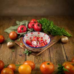 Салат из сочных узбекских помидоров со сладким крымским луком и оливковым маслом