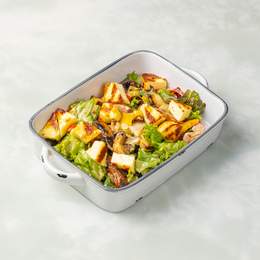 Болгарский перец, шампиньоны, цукини, баклажаны, соус халуми, микс салата, халуми