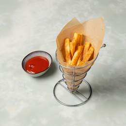 Свежий картофель, растительное масло, соль, соус кетчуп