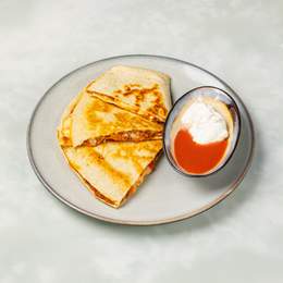Соус болоньезе мясной соус в томатном соусе, тортилья, сыр гауда, помидор, сметана, томатный соус