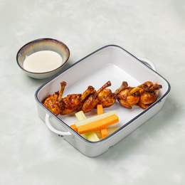 Куриные крылья, соус барбекю, сельдерей, морковь,сливочный соус