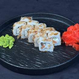 Филадельфия 10шт, калифорния 10шт, цезарь жареный 10шт, темпура лосось 10 шт, белый кунжут 10шт, ясай 10шт, фреш 10шт