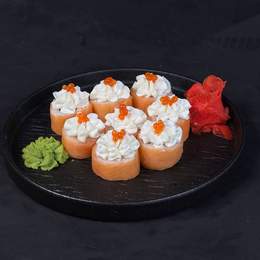 Рис для суши, нори, сливочный сыр, сёмга, икра