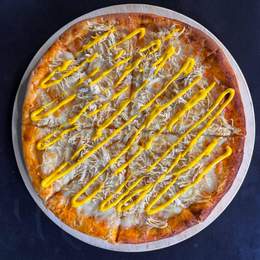 Пицца соус, тесто для пиццы, моцарелла, орегано, куриное мясо