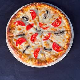 Пицца соус, тесто для пиццы, моцарелла, шампиньоны, орегано, помидоры