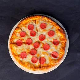 Пицца соус, тесто для пиццы, моцарелла, шампиньоны, орегано, салями из говядины
