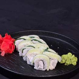 Рис для суши, нори, сливочный сыр, куриное мясо, помидор, огурцы, майонез