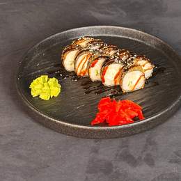Калифорния запеченный 10шт, цезарь запеченный 10шт, темпура лосось запеченный 10 шт