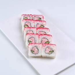 рис для суши, водоросли нори, крабовое мясо, тобико, огурец, майонез