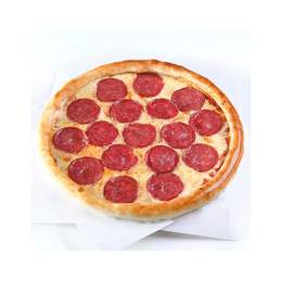 тесто для пиццы, соус томатный, сыр моцарелла, салями (Халял)