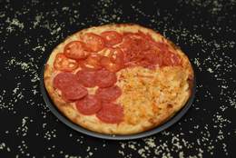 Моцарелла, пепперони, томаты, шампиньоны, курица, томатный соус