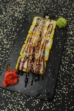 Цезарь жареный (10 шт.), Цезарь запеченный (10 шт.), Филадельфия (10 шт.), Калифорния (10 шт.), Капа (20 шт.), Саке ролл (10 шт.), Бонито (10 шт.), Фреш (10 шт.), Темпура (40 шт.), Пирамида (10 шт.), Пицца "Маргарита", "Пепперони", "Четыре сезона", Куриный, Сырный