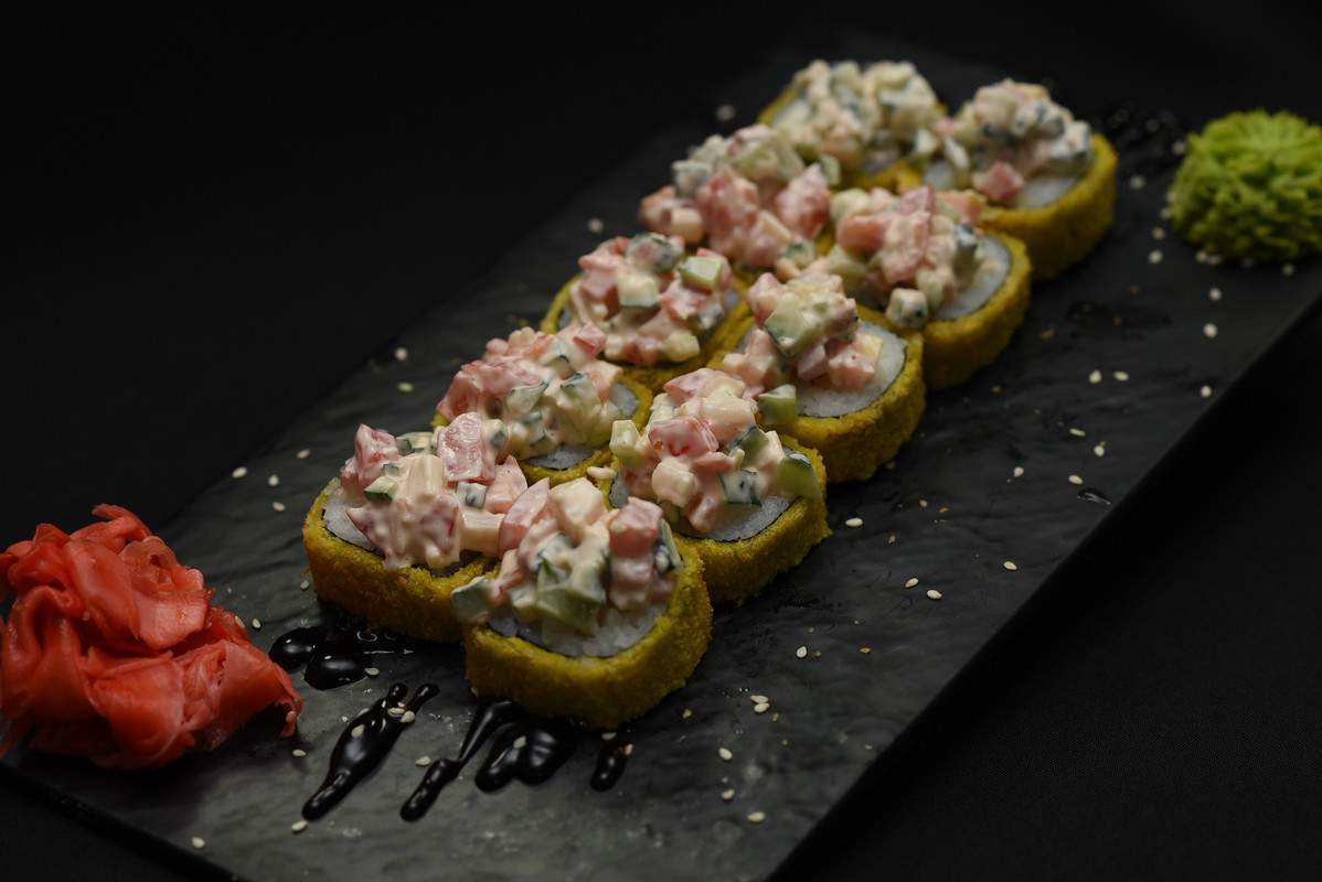 Цезарь жаренный (20 шт.), Цезарь с помидорами (10 шт.), Темпура с крабом (10 шт.), Сяке темпура (10 шт.), Америка (10 шт.), Пицца "Маргарита" 8 кусочек, Пицца "Пепперони" 8 кусочек