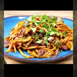'Фри с мясом - классическое блюда с жареным мясом,овощами и специями,создающее ароматную и насыщенную комбинацию вкусов''