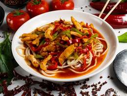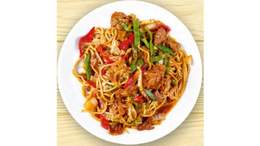 Рис/тесто на выбор, овощи, специи, соль, мясо говядины мелкой нарезки