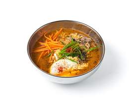 Пшеничная лапша на основе мясного бульона со специями , говядиной и яйцом