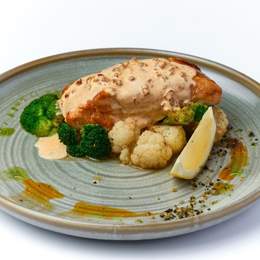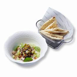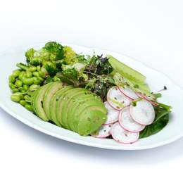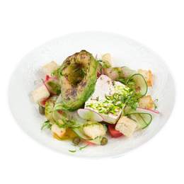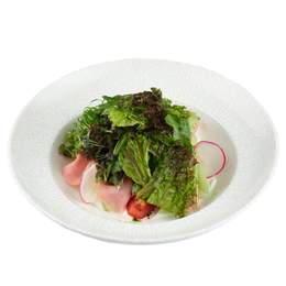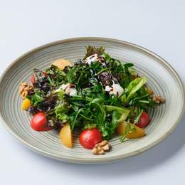 Нежный салат с ветчиной, свежими огурцами, помидорами, заправленный оливковым маслом. Лёгкий и сытный — идеальный выбор для быстрого перекуса или лёгкого ужина.