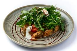 Айсберг, черри, куриное филе, сыр Пармезан, яйца куриные, соус "Цезарь"