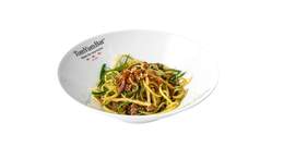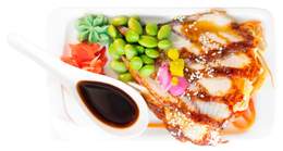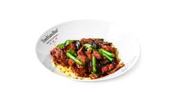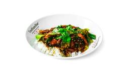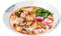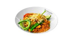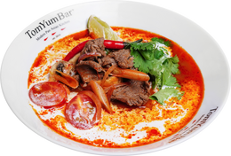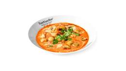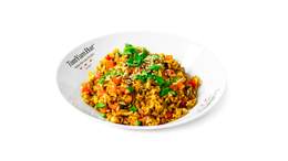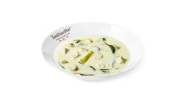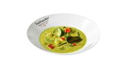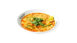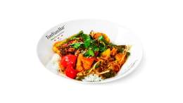 Традиционное азиатское острое блюдо, приготовленное на пасте из разнообразных специй и сливках с кокосовым молоком. В составе: стручковая фасоль, цветная капуста, брокколи, паприка, цукини, лайм, кинза. Подается с порцией пропаренного риса