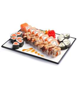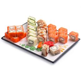 - Филадельфия (8 шт.) - Ролл "Огурец" (6 шт.) - Ролл "Лосось" (6 шт.) - Сливочный угорь (8 шт.)