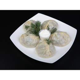 нежные паровые пельмени с сочной мясной начинкой (чаще всего из говядины или баранины), приправленные специями и подаваемые с соусом или сметаной.