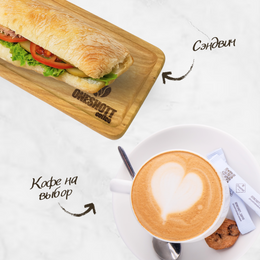 Свежий сэндвич и нежный капучино — идеальная пара для вкусного и бодрого перерыва. Объем кофе (350 мл.)