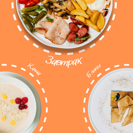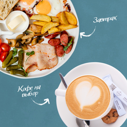 Большой и сытный завтрак с ароматным кофе — всё, что нужно для вкусного и энергичного утра. Идеально, чтобы начать день на полной скорости. Объем кофе (350мл.)