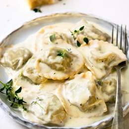 Raviolis fraîches garnis de 4 fromages , Cream , Parmesan
