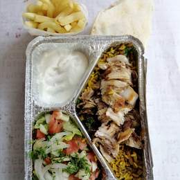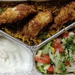 رز كبسة +سلطة شرقية +شيش طاووق+فريت +صوص