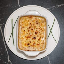 Gratin de pomme de terre, d'oignons, de crème fraîche, le tout gratiné Au reblochan