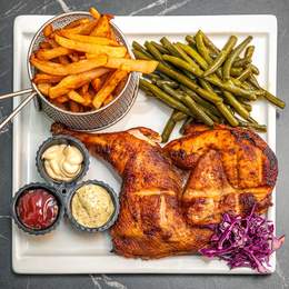 Demi poulet braisé, 2 accompagnement selon vos choix sous reserve de disponibilité