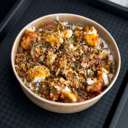 Riz parfumé, poulet croustillant, sauce blanche maison et sauce sweet chili légèrement piquante, oignons crispy et persil frais. Un mélange croustillant et fondant, gourmand et ultra savoureux