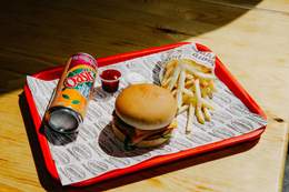 Double steak, salade, tomates, oignon, cheddar Frites Boisson